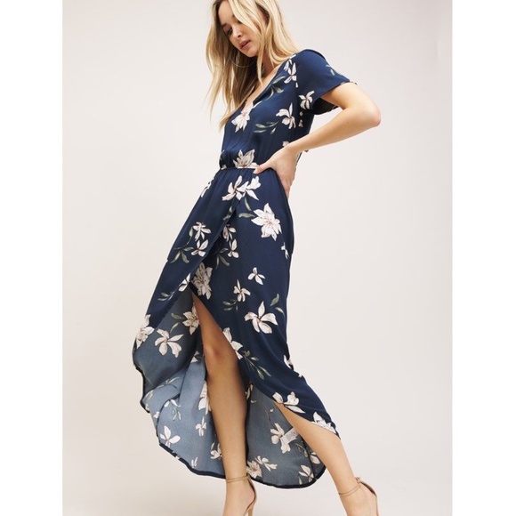 Dynamite Dresses Dynamite Wrap Maxi Dress Navy With White Floral Poshmark