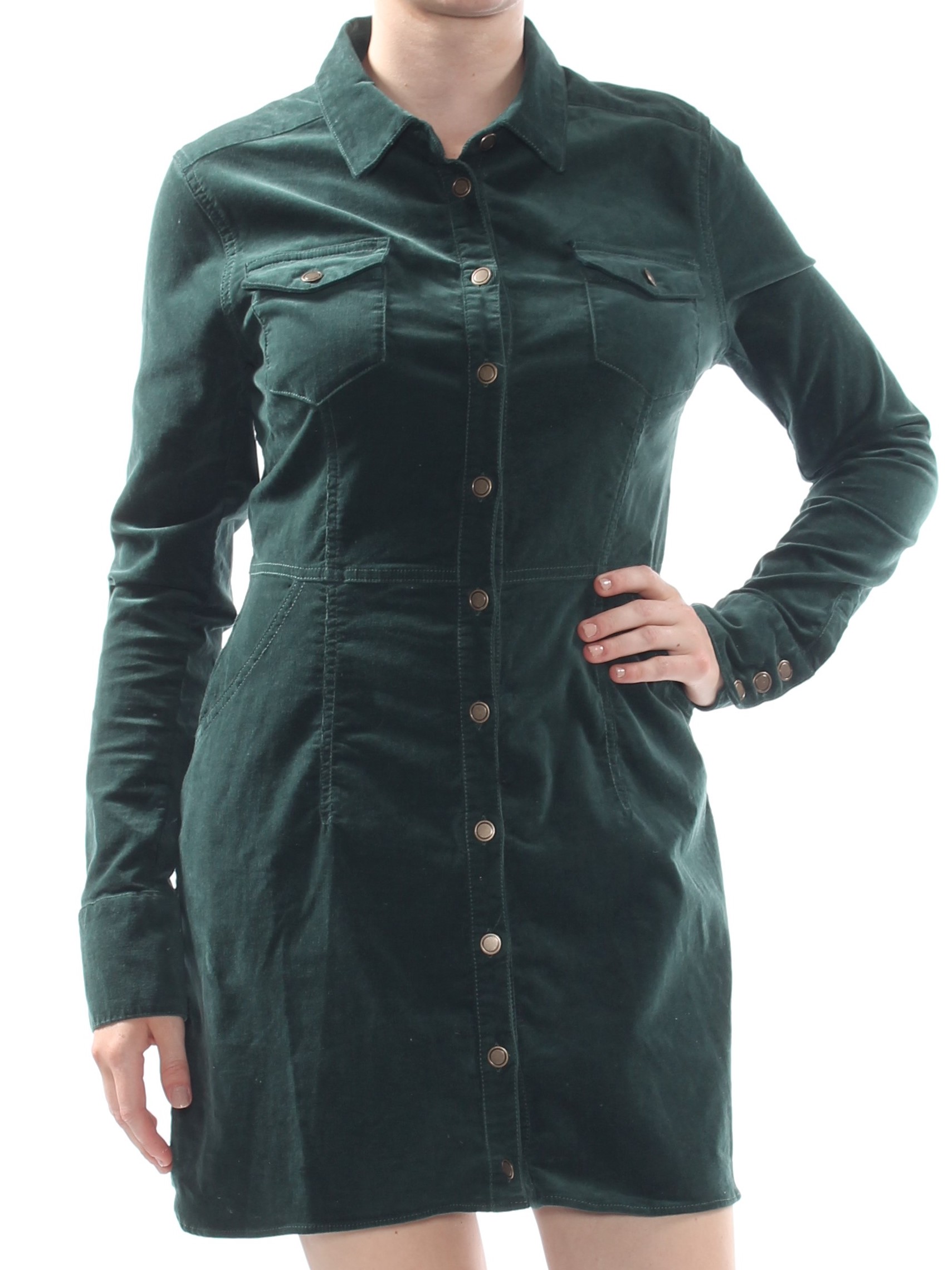 Free People 128 Womens New 1284 Green Dynamite In Cord Long Sleeve Dress Xs B B Walmart Com